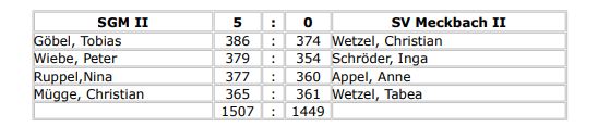 Endergebnis mit 1507 erzielten Ringen, wobei Tobias die Bestleistung mit 386 Ringen